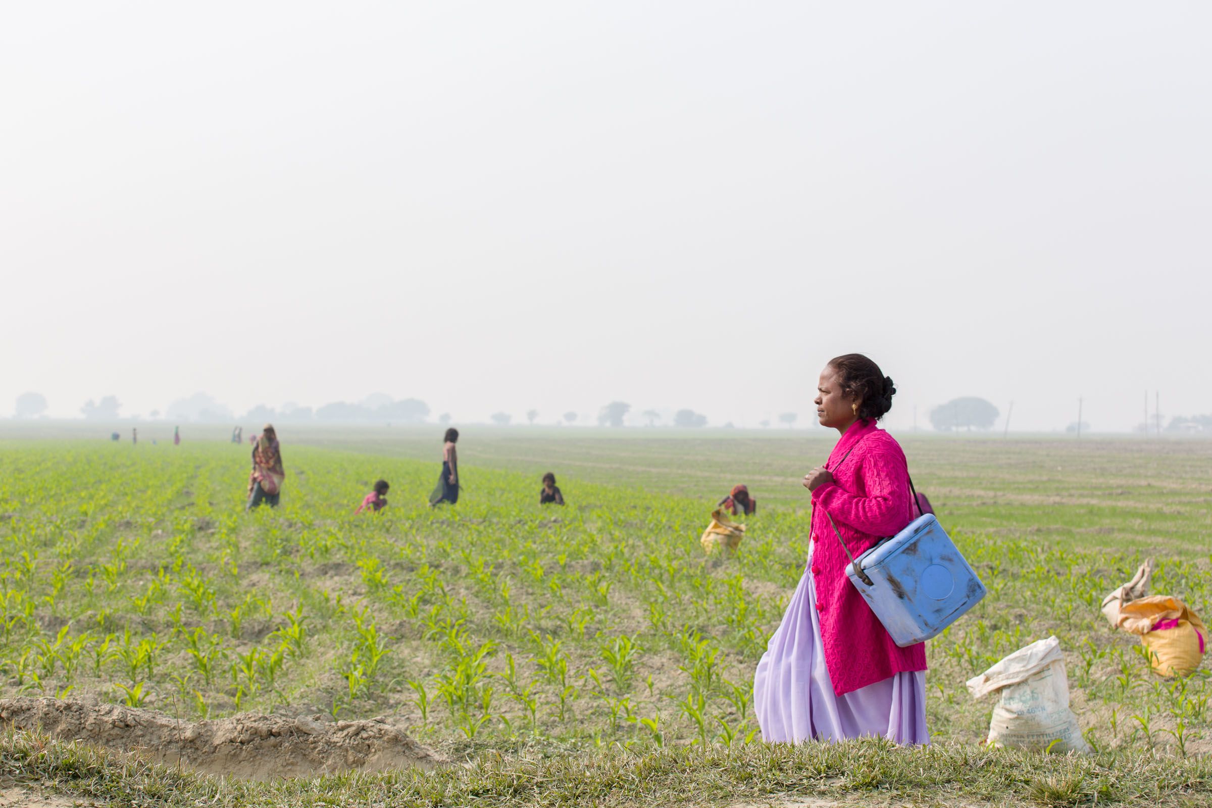 Families spend the dry season tending to their crops, a crucial livelihood for people in the Kosi Basin area.